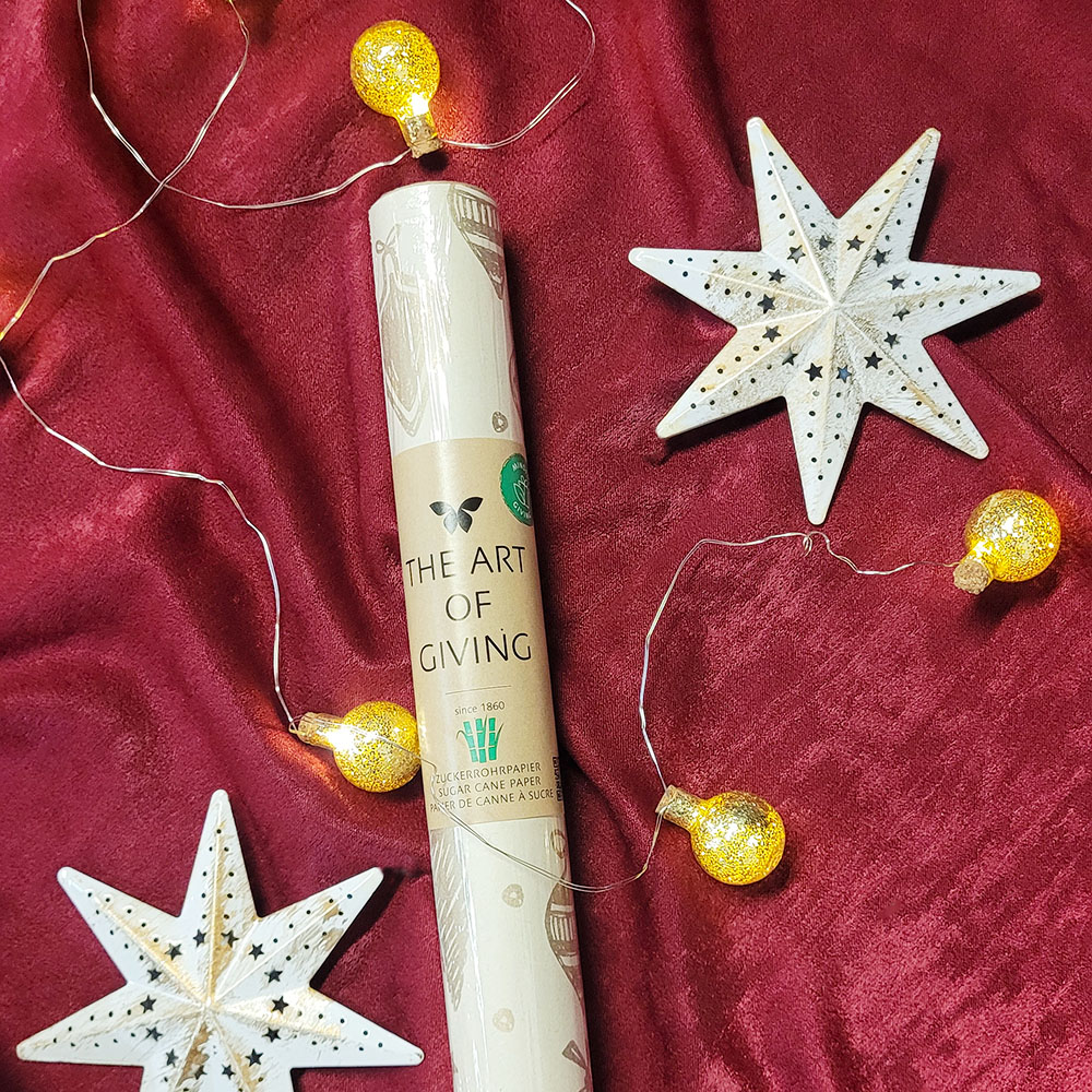 Упаковочная бумага для подарков из сахарного тростника, с обратной стороны однотонная.